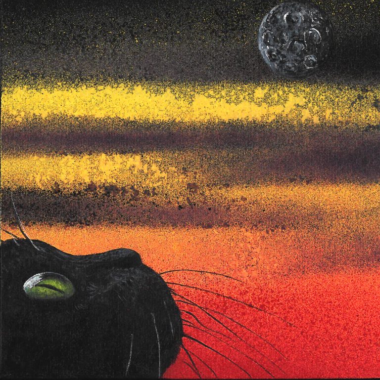 Small canvases with cats and spiders. Spray paint and Posca pens. More here.